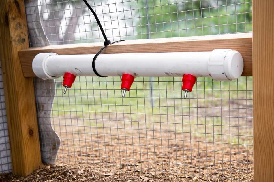Place or hang the bucket in a shaded area and raise it slightly so chickens can easily reach the nipples.