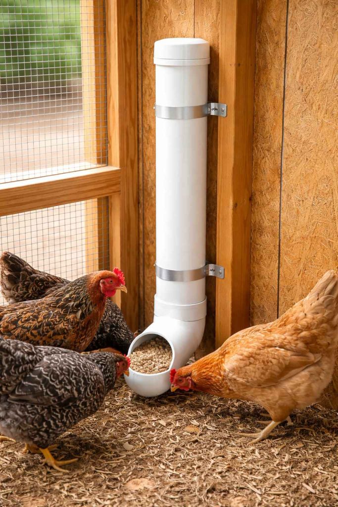 A DIY PVC chicken feeder is one of the simplest and most practical options for backyard flocks. You can mount it along the coop wall or inside the run, keeping it raised to your chickens’ back height to cut down on scratching and waste.