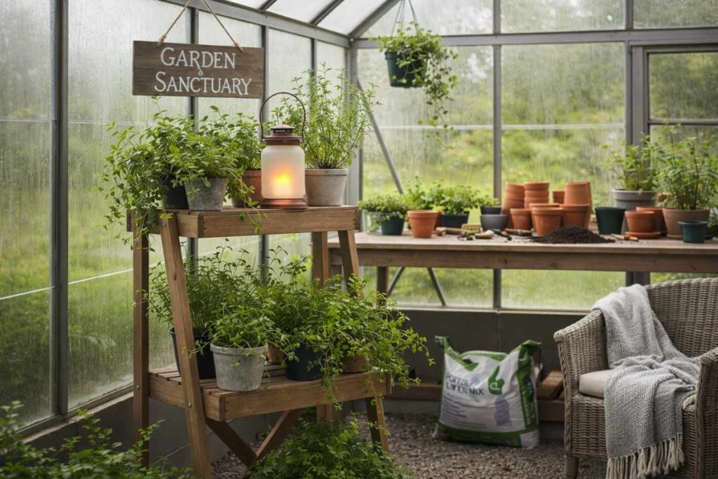 Your greenhouse does not have to feel plain or overly serious. Adding a small decorative touch like a simple lantern, a garden sign, or a neat plant stand can make it feel more personal.