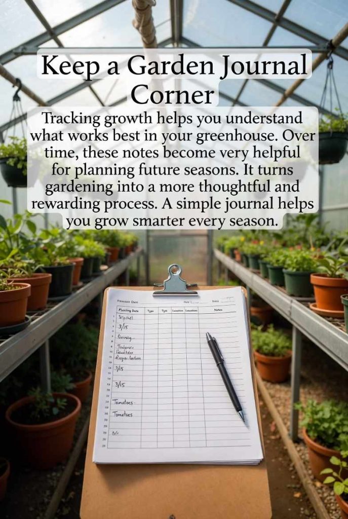 Set up a small spot with a notebook or clipboard where you can write down planting dates and observations. Tracking growth helps you understand what works best in your greenhouse.