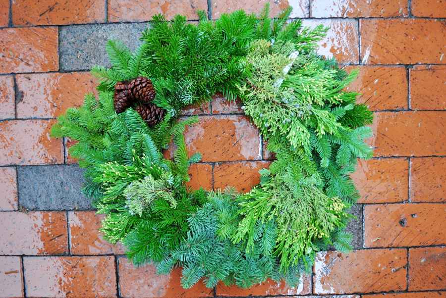 If possible, ask when the wreaths were made and choose the newest batch. Fir, cedar, and spruce are especially sturdy evergreens that naturally retain moisture longer than others.