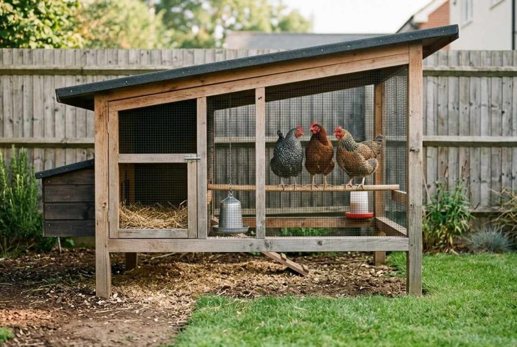 Chickens don’t need anything fancy — just a solid roof, dry bedding, and protection from whatever’s lurking out there.