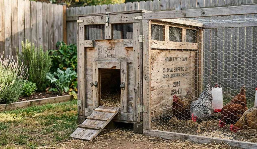 The best part? Pallets are usually free, which keeps your build super affordable. They’re strong, weather-tough, and perfect for creating a coop without buying loads of lumber.
