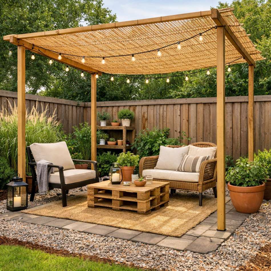 A simple covered patio adds comfort without needing a full structure. Even a basic cover can make your outdoor space more usable during strong sun or light rain.