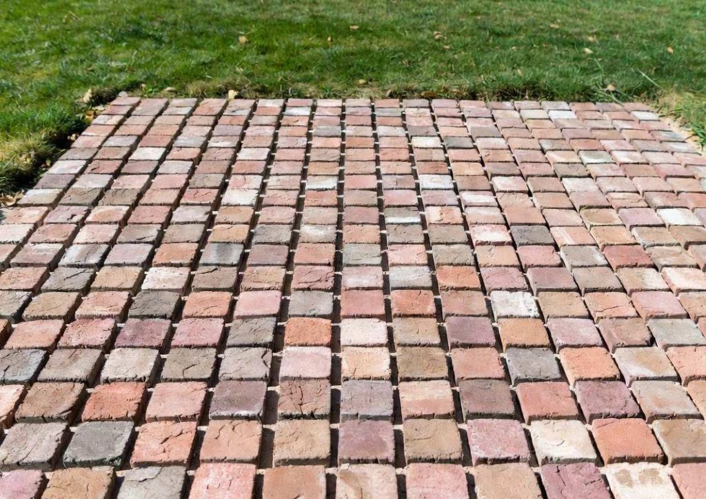 Clear away grass and debris, then dig the soil about 3–5 inches deep. Add a layer of sand and level it properly to create a smooth base. Place the bricks carefully, leaving small gaps and checking that each one sits evenly.