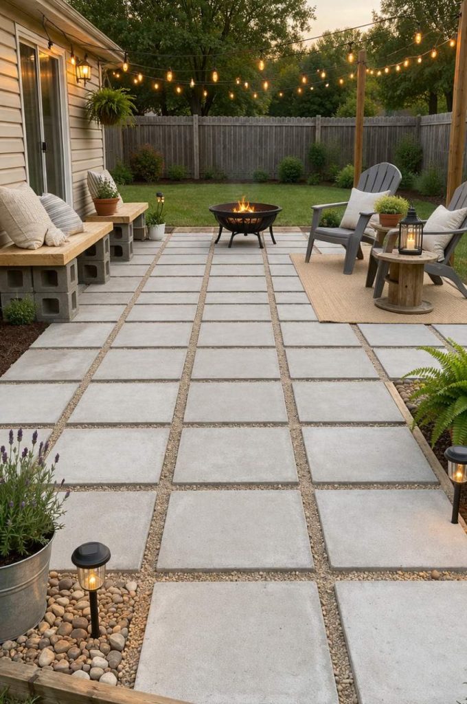 A cement block patio is a strong and budget-friendly option that is easy to arrange. The blocks are affordable and give a clean, simple look to your outdoor space.
