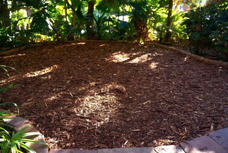 Begin by clearing the area and removing any grass or weeds. Level the ground, then spread a thick layer of mulch evenly across the surface.