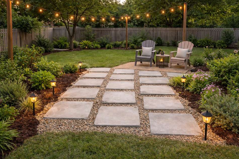 Stepping stones are perfect if you want a simple patio without covering the whole area. You can place them with gaps in between and fill the space with gravel or grass. This reduces cost while still creating a neat and usable space.