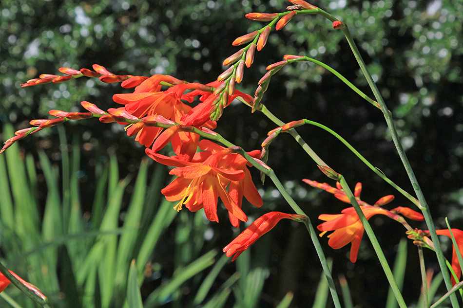 Plant crocosmia in spring and give it time to settle. Later in the season, bright fiery flowers will rise above the foliage and bring strong color to the garden.