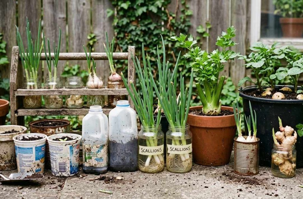 You’d be surprised how many vegetables can grow again from kitchen scraps. Things like green onions, garlic, lettuce, and even ginger can regrow with just a bit of care.