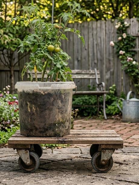 You can simply place your buckets or pots on plant trolleys or attach wheels underneath sturdy containers.