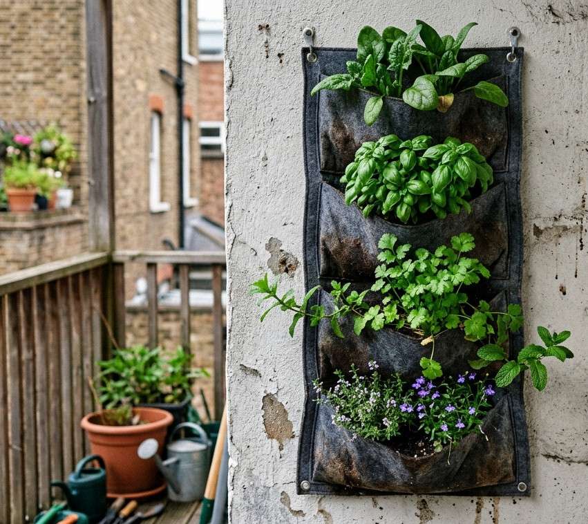 Wall space often gets ignored, but it can be turned into a productive growing area with pocket planters. These are usually fabric or vertical holders with multiple slots where you can grow small plants.