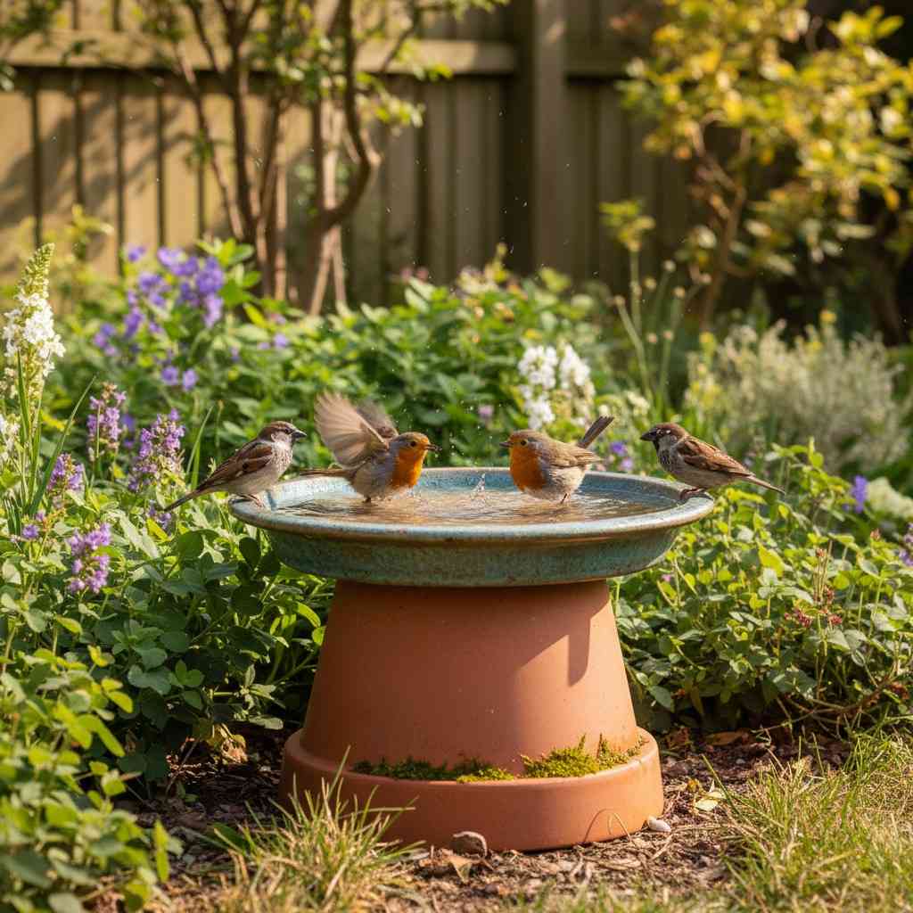 You can make a cute bird bath with just three things—a terracotta pot, a glazed saucer, and waterproof glue. Flip the pot upside down, glue the saucer on top (centered), let it dry, and fill with water. This costs way less than fancy store versions and looks just as good.