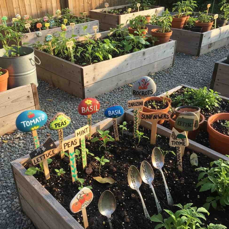 You’ll forget what you planted where faster than you think. Homemade markers from painted rocks, craft sticks, broken pottery, or old spoons help track everything. They’re especially useful for different tomato varieties or telling apart identical seedlings, plus they show planting dates and expected sprout times.