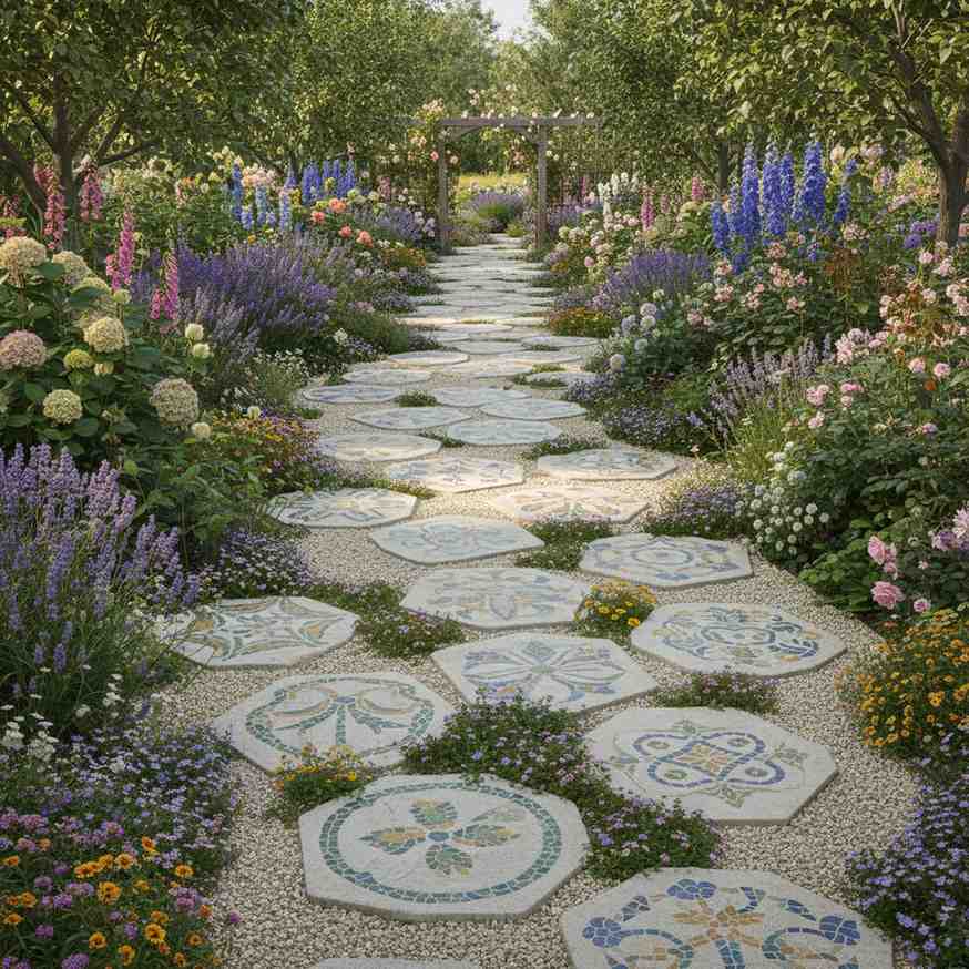 Stepping stone paths are both practical and pretty—they keep you from trampling plants while adding structure to your garden. You can use natural stone, concrete pavers, or make your own with concrete molds. They guide people through your space and make watering and weeding way easier.